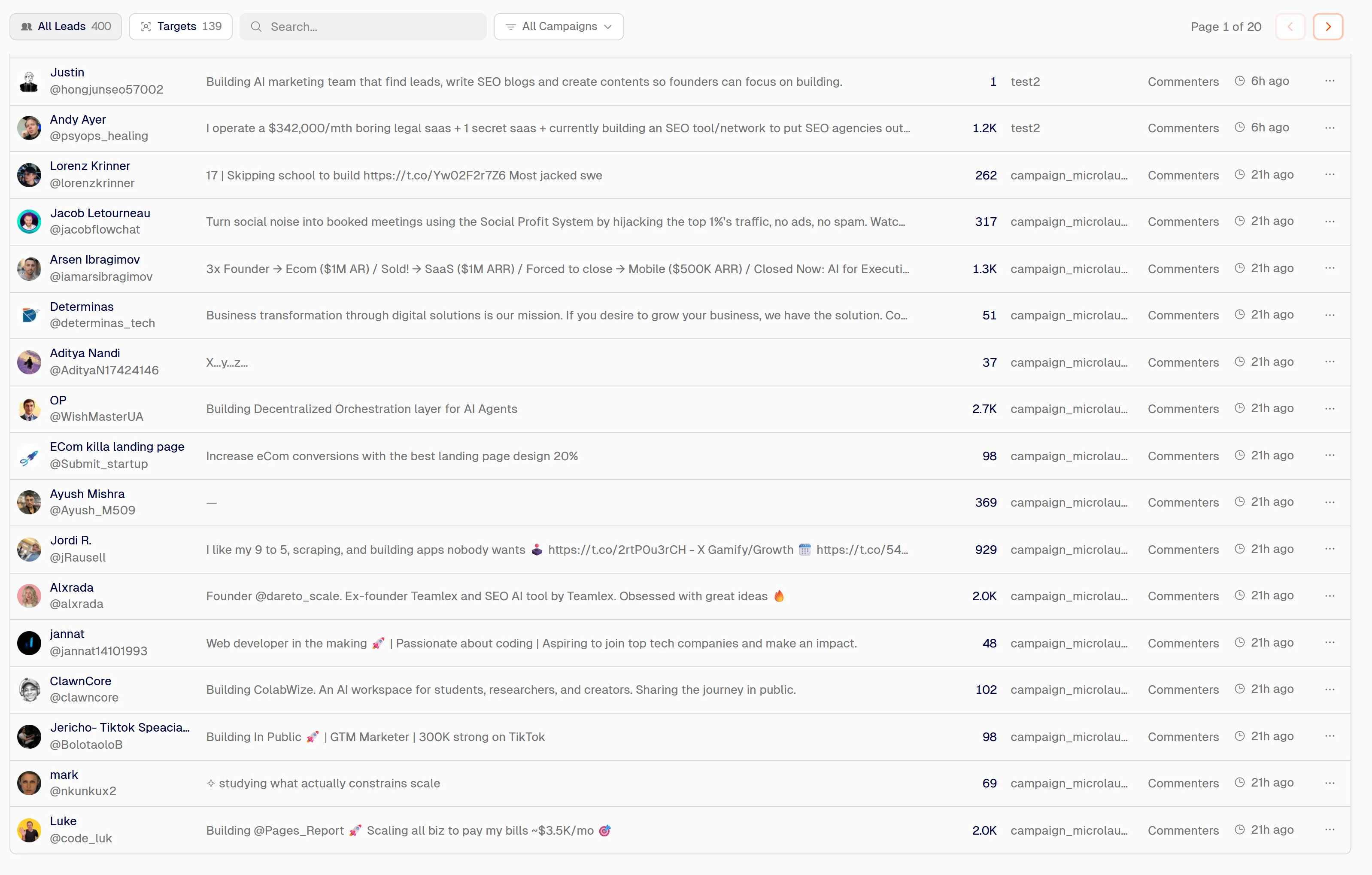 AI reads each lead's bio and the comment they left on the source tweet to judge ICP fit. Spam accounts are detected and removed automatically. Only real prospects stay in your list.